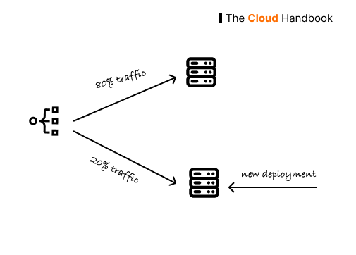 Deploy the new version alongside the old version, but route only a small percentage of traffic (typically 5-10%) to the new version. Monitor metrics, user feedback, and system performance. Gradually increase traffic to the new version if everything looks good.
